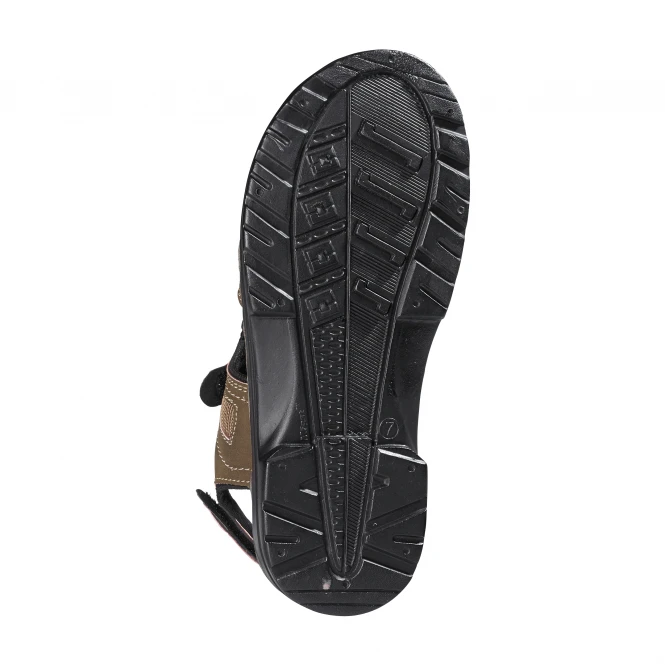 Practical sommer sandal, ideal for all hunting, free and outdoor activities. The width The width at the back of the foot and the heel strap are adjustable with velcro. With non-slip outsole. Colour: brown/black. Upper material: leather, lining and inner sole: textile, sole: other material.