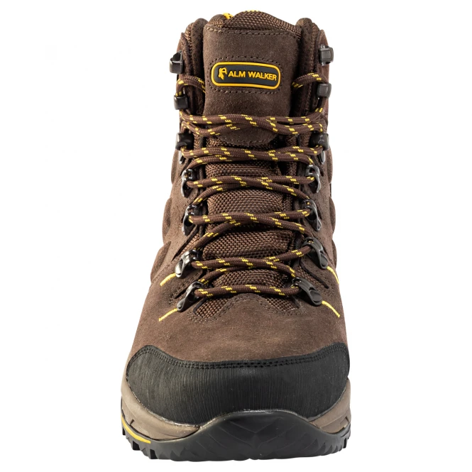 Water-repellent trekking boot with breathable AlmTex® membrane and mesh lining. The sure-footed tread sole cushions your steps well and the stable shaft offers a secure hold in the terrain. The outer material made of imitation suede with protective applications in the heel and toe area is timeless and robust. Colour: brown/yellow. Upper: textile, lining and insole: textile, outsole: other material.