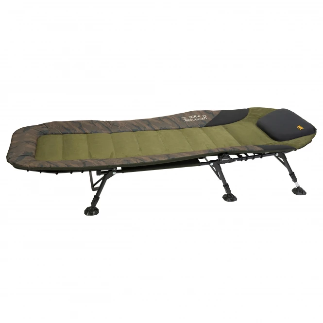 The Traditional Carp Rack-6 is a bedchair on which every carp angler feels comfortable. In the revised Freelancer Design a real eye-catcher, which has it in the point of comfort and convenience in itself. Extra large mud feet, a reinforced frame and the water-repellent 600D nylon combined with an Alcantara (imitation leather) contact surface leave nothing to be desired. The high-quality aluminium snap-in aid prevents unwanted folding of the legs. In the head area, the neoprene cushion provides additional comfort. Equipped with an extremely robust powder-coated steel frame, 6 continuously adjustable legs with mud feet, aluminium snap-in mechanism, strong padding of water-repellent 600D PU Oxford nylon and a dirt- and water-repellent cover. Foot height adjustable from 30 – 50 cm. Load capacity up to 205 kg. Lying surface: 202 x 84 cm, transport dimensions: 84 x 82 x 30 cm. Weight: 11.5 kg. Material cover: 100% polyester, pillow: 100% neoprene.