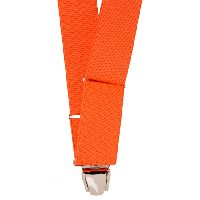 Innovative, patented braces system consisting of only two side clips and an elastic band. No pressure on the abdomen, invisible even with open jacket. The suspenders adapt to all body shapes and movements and allow you more freedom of movement. They are comfortable to wear and ensure well-fitting clothes. Colour: orange. Material: 80% polyester, 20% elastodiene.