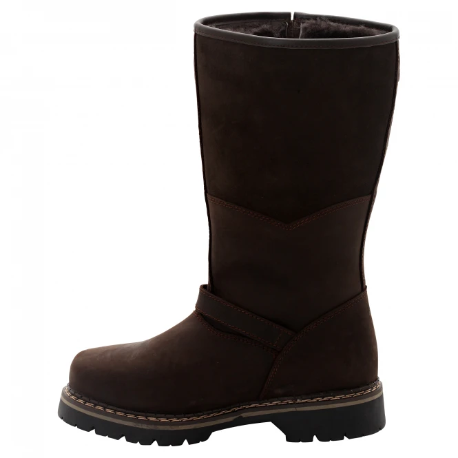 High-quality nubuck leather boots with warm shearling lining, covered with polar Alpe-fur, removable insole and thermal rubber outsole. With side zipper for easy on and off. Instep and calf area can be adjusted for a perfect fit with a buckle. The breathable, waterproof Out Dry membrane is applied directly to the leather interior and so prevents the ingress of water and thus increase the Shoe own weight. The Thinsulate insulation material for increased warmth. Colour: brown. Upper: leather Lining and sock: leather Sole: other materials.
