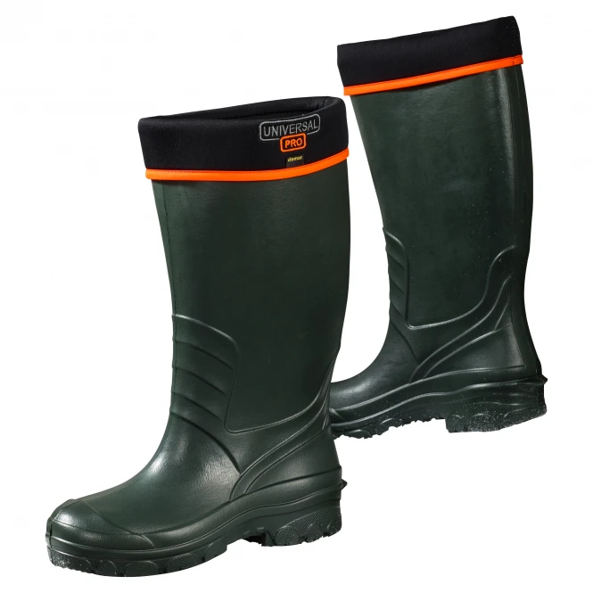 This boot is very light (gr. 42 only 600 g) and made of EVA. The processed TR-treaded sole offers special slip resistance and low abrasion. The inner shoe is good isolated, removable and keeps the cold outside up to -30° C. Colour: green, orange signal stripes on the top. Upper material: other material: lining and cover sole: textile, outsole: other material.