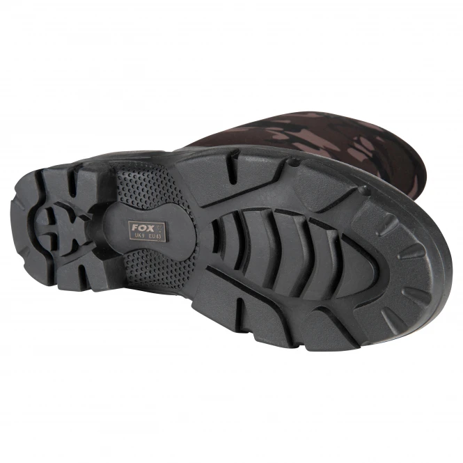 Super comfortable neoprene boot made of 6 mm thick neoprene for increased thermal insulation and optimal warmth. Slim high design with optimal fit in fox camo design. EVA insole and 3D mesh lining prepare maximum comfort. With robust and non-slip rubber sole for best grip on wet or muddy surfaces. For easier removal of the boots provides a heel edge. Colour: camou.