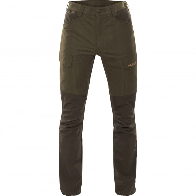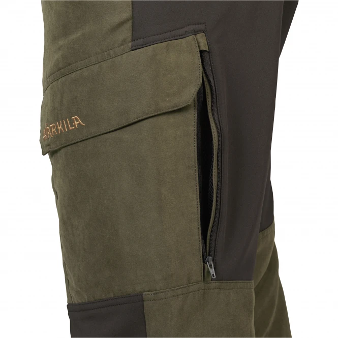 The Härkila Scandinavian hunting pants are made of an extremely quiet, soft, durable and quick-drying cotton-polyester blend. In addition, the pants offer an active fit with elastic seams on the waistband and stretch inserts on the buttocks, knees and lower legs. This ensures optimal freedom of movement and makes the model the perfect companion on the stalk. At the same time, the pants offer a number of practical features that you will undoubtedly appreciate: On the back of the thighs, long ventilation zippers with internal mesh material provide the necessary ventilation when you get too warm – and without the risk of insects, leaves or small twigs getting in. On the front of the thigh are large spacious pockets with zippers and a protective flap with silent magnetic closure. The right pocket is equipped with a cartridge holder for four additional cartridges, and in the left pocket is a convenient small pocket for the cell phone, so that it does not slide back and forth during movements. Colour: green/brown. Material: 55% polyester, 35% cotton, 10% nylon.