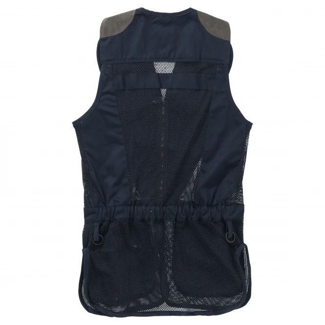 Elegant and practical cotton shooting vest. The vest is the ideal companion, both on the shooting range and in the area. It has 2 spacious patch pockets for a high intake of ammunition. The elastic waistband at the hip guarantees a high wearing comfort. Mesh lining is on the back and front. Colour blue. Upper: 100% cotton, mesh lining: 50% cotton, 50% polyester.