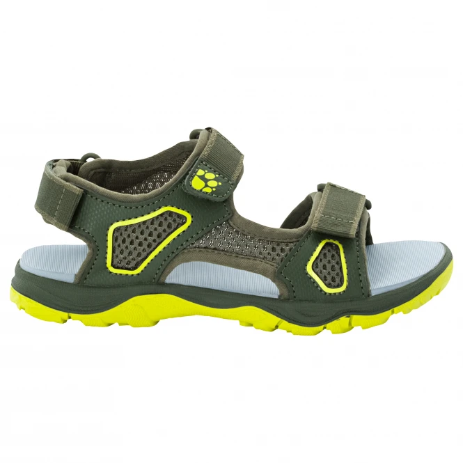 The lining of the sandal is pleasantly breathable and does not stick to the foot. In addition, all materials are insensitive and dry again in no time after refreshment in the stream. Color: khaki / lime. Upper, lining and insole: textile, outsole: other material.