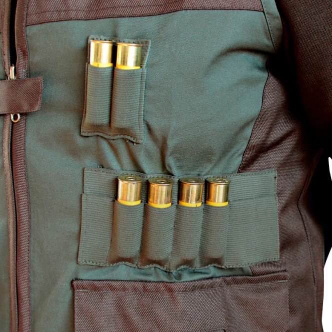 A two-colored Vest with 2 cargo pockets, 2 rows to attach shotgun shells, 2 slide-in pockets and a inner pocket. The reinforced shoulders are made of Oxford 900D. Colour: khaki. Material: 65% polyester, 35% cotton. Reinforcements: 100% polyester.