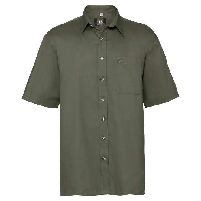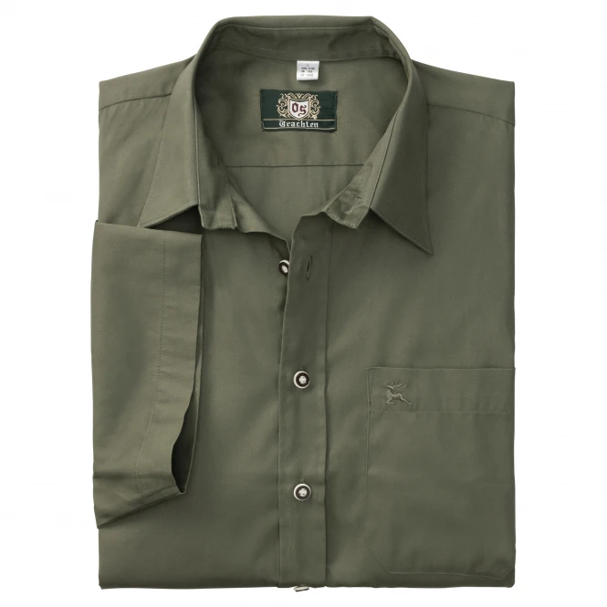 Short sleeve men’s shirt with an easy to iron finish. With chest pocket on the left, with noble embroidery “jumping deer”. Regular fit for the perfect wearing comfort. Colour: olive. Material: 100% cotton.