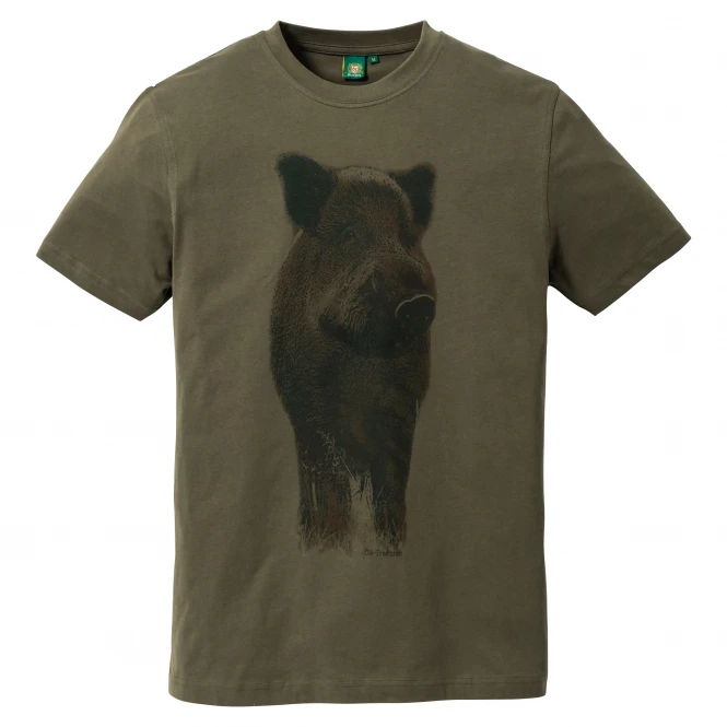 Trendy T-shirt in a classic, comfortable cut. With round neck and print motif of a wild boar. Colour: olive. Material: 100% cotton.