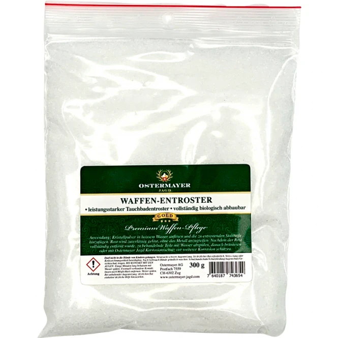 Ostermayer Hunting Gun De-Ruster . For use in a water bath. Contents: 300 gr.