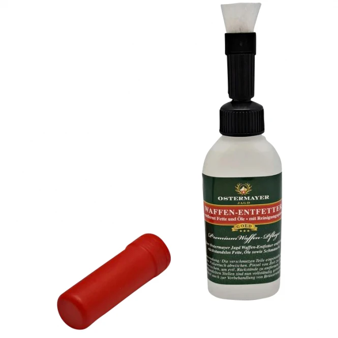 Ostermayer Hunting Gun Degreaser in the practical brush bottle. Cold degreaser for convenient use. Contents: 150 ml.