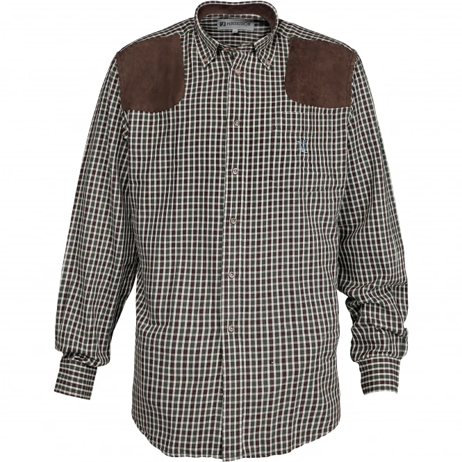 With button-down collar. With one breast pocket and imitation suede trim above the shoulders. Colour: khaki/checked. Material: 100 % cotton.