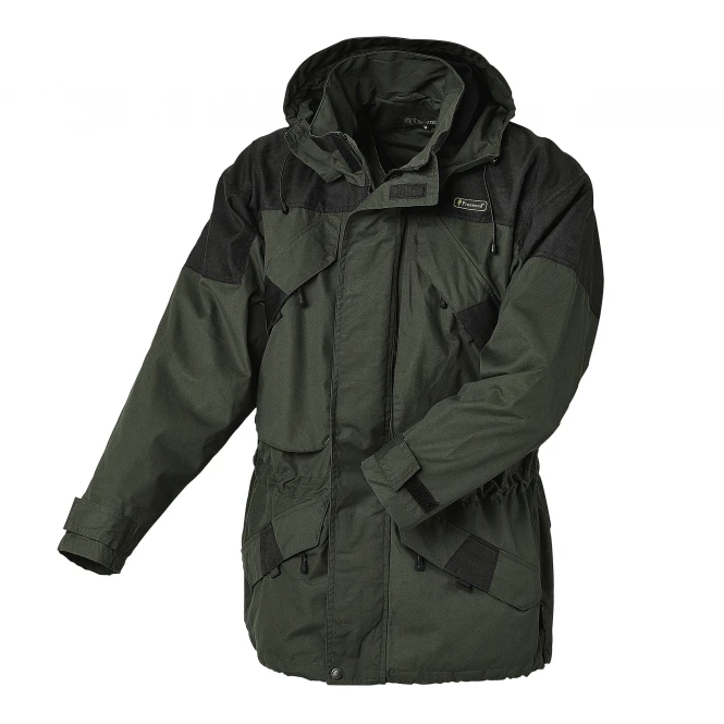 This jacket is covered with a complete wind / water proofed and breathable membrane. The elastic membrane has a lightly brushed coating. Covered stitching. Extra water and stain resistance thanks to DuPont’s special Teflon coating. The Pinewood Extreme Jacket Lapplamd has many practical pockets. Colour: dark green / black. Material: 65% polyester, 35% cotton.