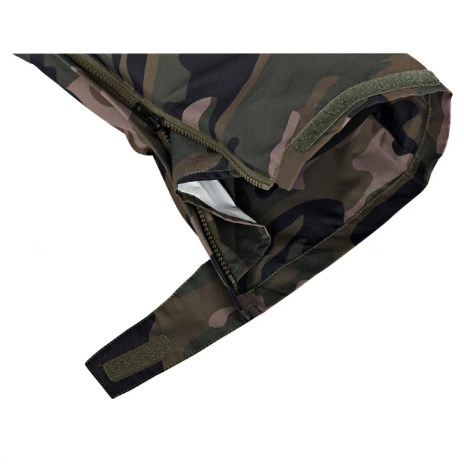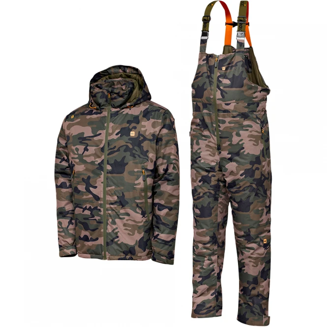 Waterproof, two-piece thermal suit with water-repellent zips, adjustable braids, sealed seams and adjustable hood. Water column: 8.000 mm. Material: 100 % polyester.