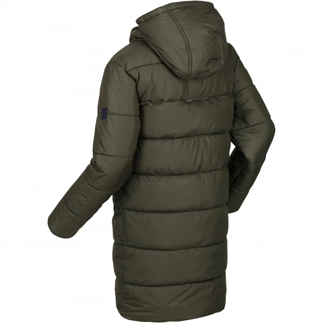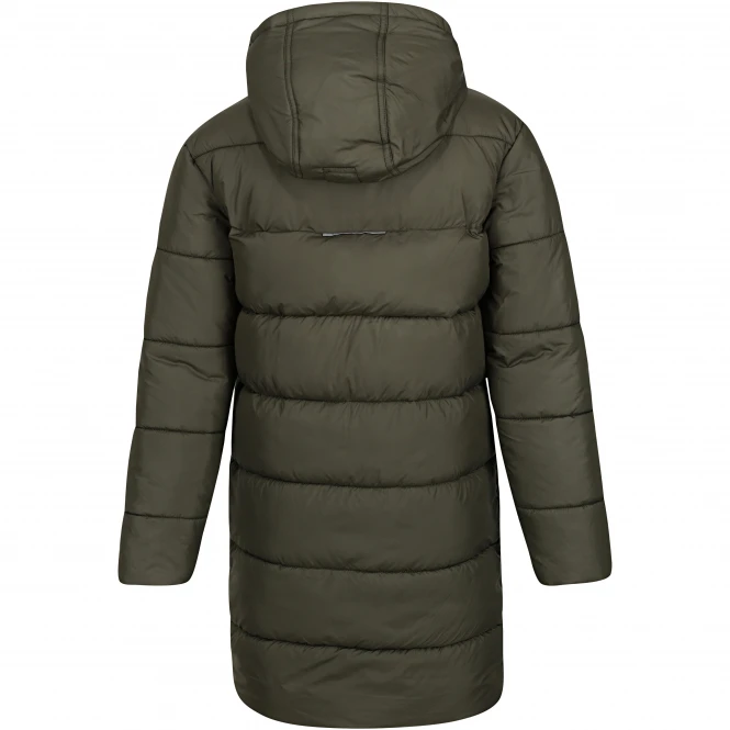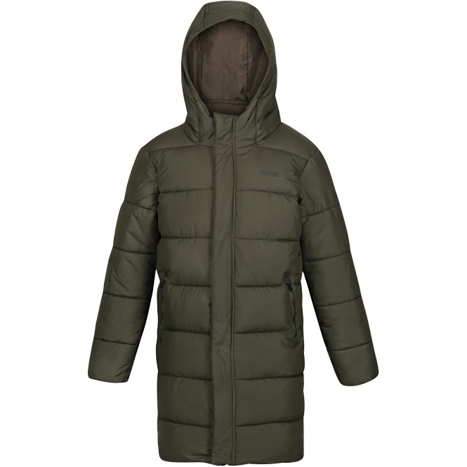 Simple children’s parka in a straight cut, the ideal companion for cold days. For reliable protection from the cold and wet. With two side pockets and high-closing collar and hood. With Regatta lettering on the left chest. Colour: dark khaki. Material: 100% polyester.