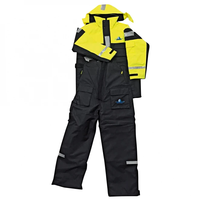Jacket and pants according to EN ISO 12402-5, 100% windproof and waterproof, with double taped seams. Ensures optimum safety in the event of going overboard. Warning: Buoyancy aids only reduce the risk of drowning, they do not guarantee rescue. Color: Yellow. Outer material and lining: 100% polyester, filling: foam, reflective material: 3M Solas.