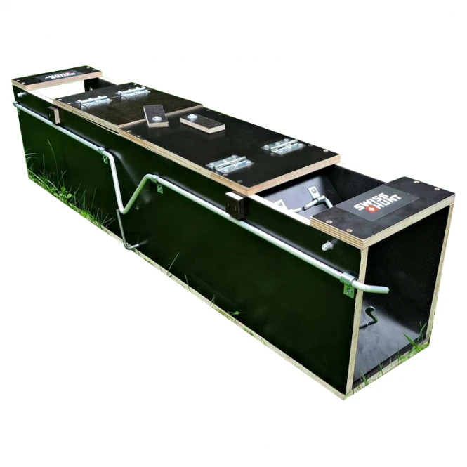 The Artemis 110 rocker board trap from SwissHunt is an absolute professional live trap with footboard release, as it is also used by gamekeepers and pest controllers in continuous operation. Excellent for stone and pine martens, as well as weasels and cats.